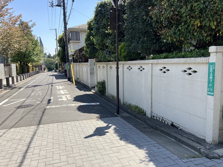早稲田通りの杉並工業高校南交差点から北に向かって擂鉢状に坂が下っています。