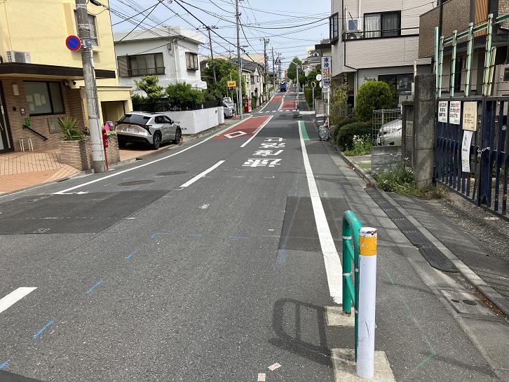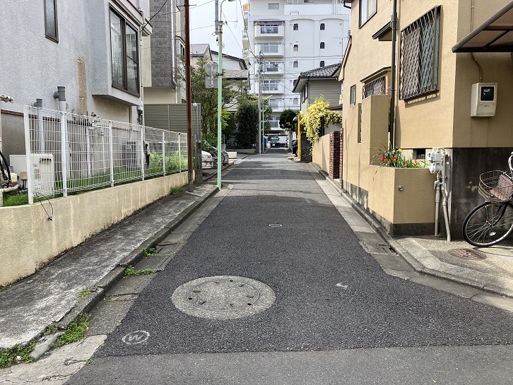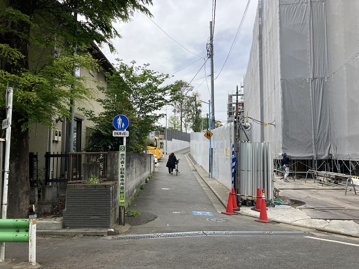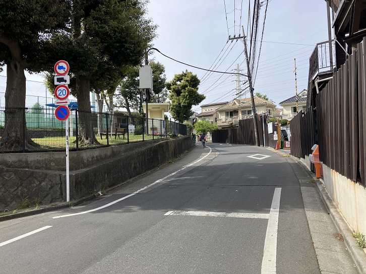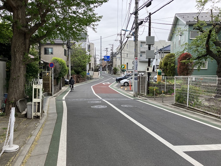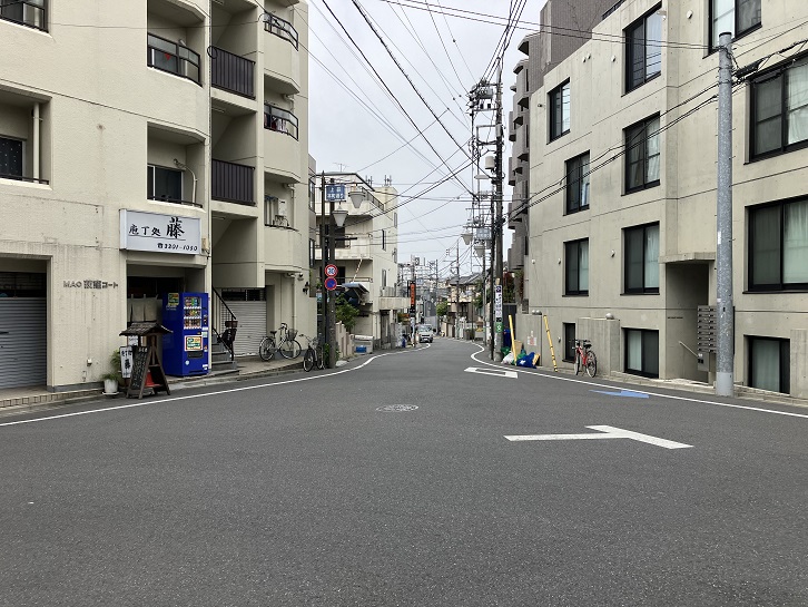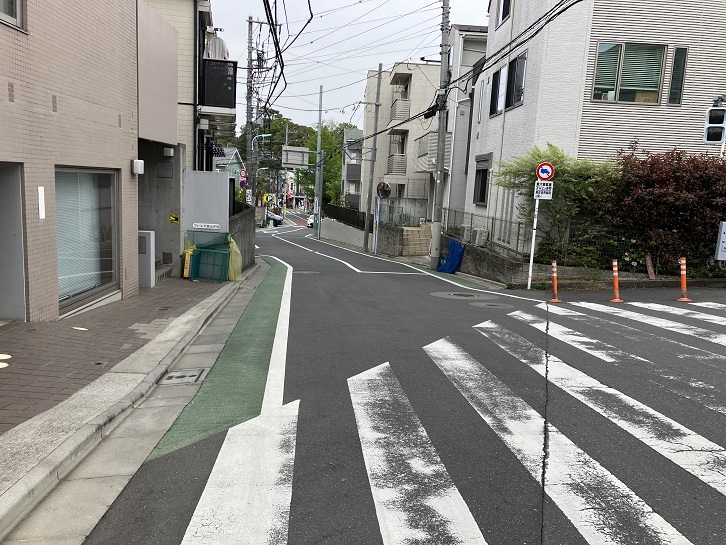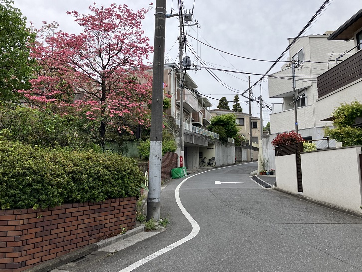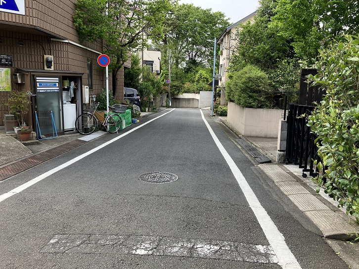 西荻窪駅北口から北銀座通りを進み、桃井三小西交差点の次の交差点を右折します。西荻わかば公園の前から何ということもない坂が下っています。