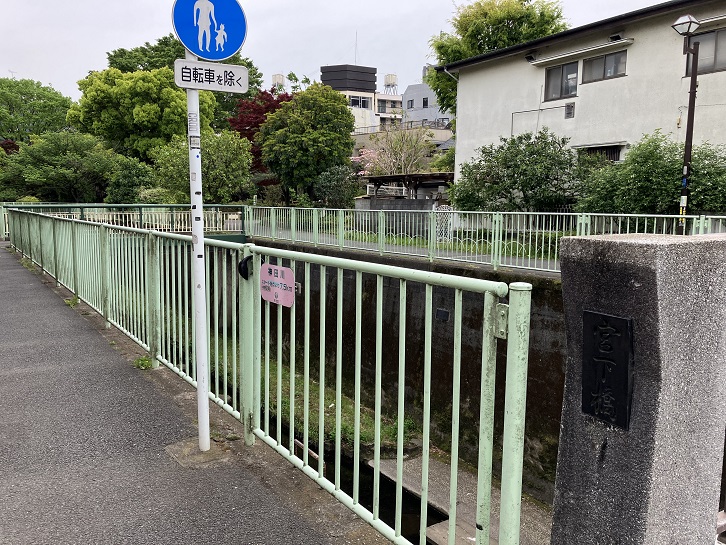 久我山駅は神田川に面しています。神田川に沿って宮下橋まで進みます。