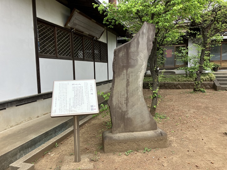 境内の一画に大きな石碑が建っています。案内板には、「人心同」の碑と書いてあります。「人心同」とは、体は遠く離れていても心は同じという意味です。即興の文とは思えないですね。