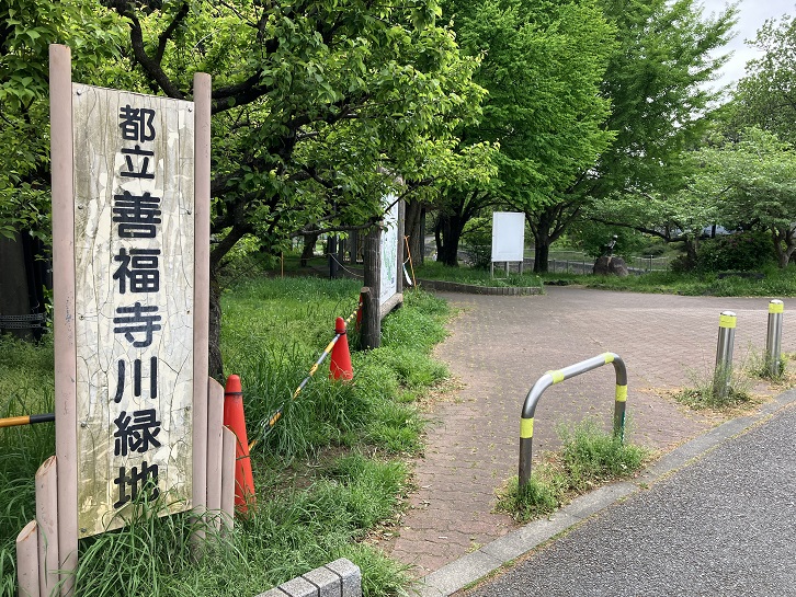 尾崎橋は善福寺川公園のほぼ中央に位置しています。善福寺川の両岸には緑道が整備され、緑に覆われた恰好の散歩道になっています。