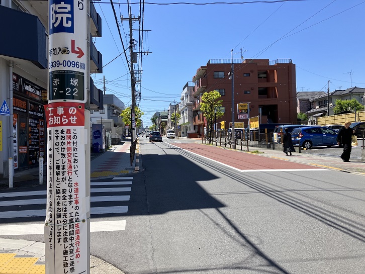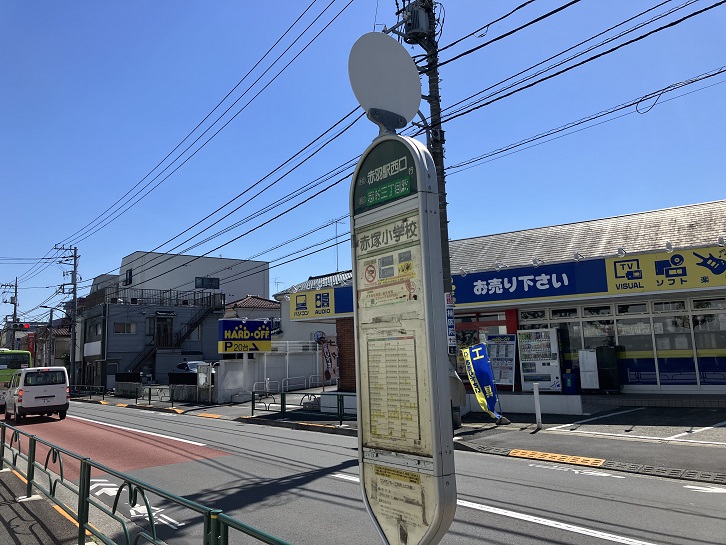 今日は前回の「成増・赤塚コース」に引き続き、赤塚地区の残りの坂と大門・四葉・徳丸地区の坂を巡りたいと思います。前回のゴール地点である国際興業バスの赤塚小学校バス停からスタートします。
