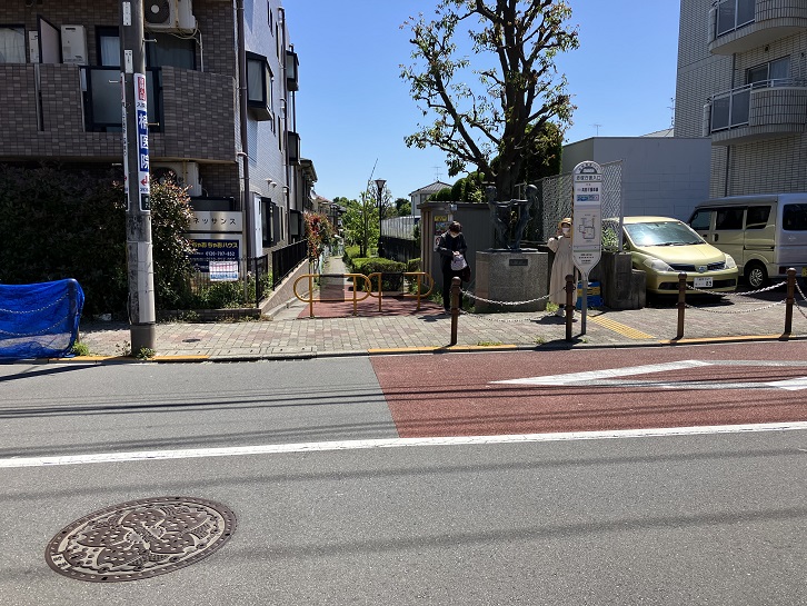今日のゴール地点をどこにしようかと思ったのですが、この辺りには近くに鉄道の駅がなく、最寄りの駅までバスを利用するしかありません。どこで中断するかは気分次第です。ちょっと時間は早いのですが、たまたま鷹番ノ坂を上がりきったところの松月院通りにバス停が見つかったので、ここで今日の坂巡りを中断しようと思います。バスの系統は赤02で、朝利用した便と同じでした。