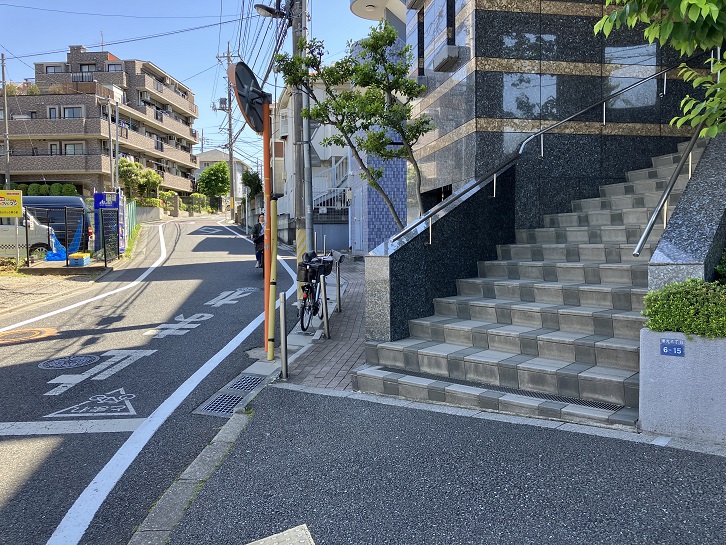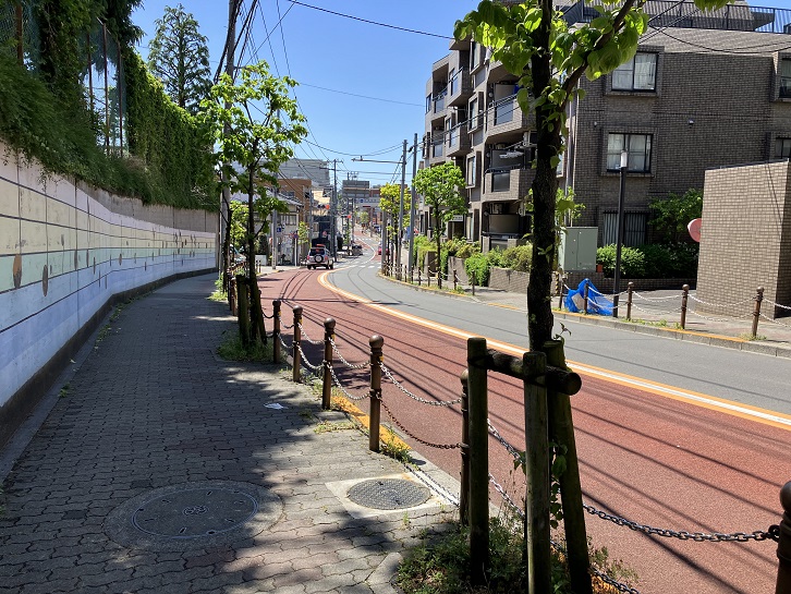 次の坂は坂学会の坂リストには掲載されていないのですが、Googleマップには線が引かれています。最初は間違いかと思ったのですが、ネットで検索するとちゃんと見つかります。そこではこの坂は「板橋区−29」と表示されていますが、坂学会の坂リストの「板橋区−29」は「城山の坂」として掲載されています。どうやら重複して採番した結果、片方が坂リストから脱落してしまったようです。