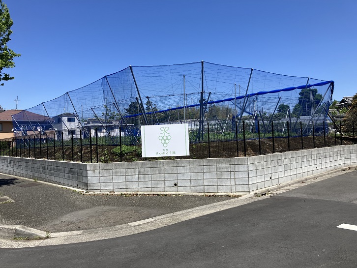 側道に面して葡萄農園があります。板橋区で唯一葡萄狩りのできる「板橋さんぶどう園」は、かつて板橋区のチベットと呼ばれた秘境大門で半世紀以上に亘り葡萄園を経営しています。昨年(2022年)は人為的ミスにより葡萄の品質低下が発生し、そのために葡萄を全て切り落とし、葡萄狩り・直売・JAでの販売を中止したそうです。今年は無事育ってくれればいいですね。でも、葡萄農園は他にもあったような。。。