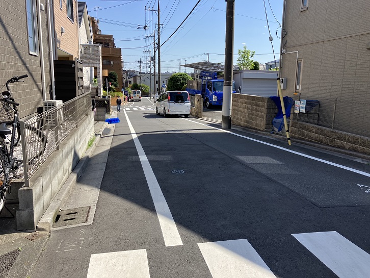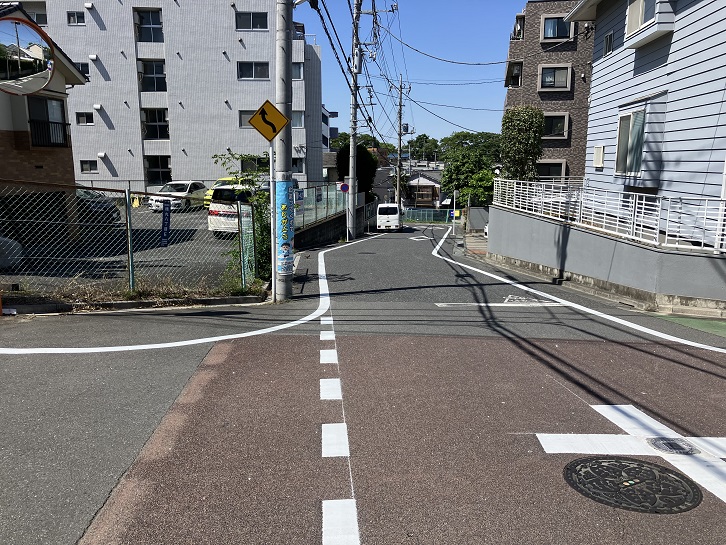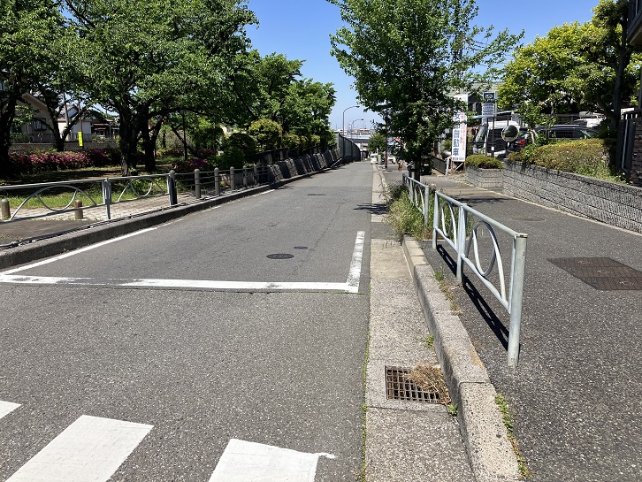 大門みはらし台公園の前の交差点の先にある安部自動車の前付近から、新大宮バイパスに合流する手前まで側道が下り坂になっています。