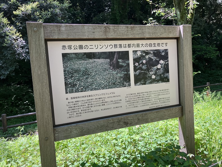 板橋区の花は「ニリンソウ」だそうです。ニリンソウをモチーフにした絵がプレートに描かれて歩道にはめ込んであります。この辺りは特にニリンソウの自生地として大切に保護されています。