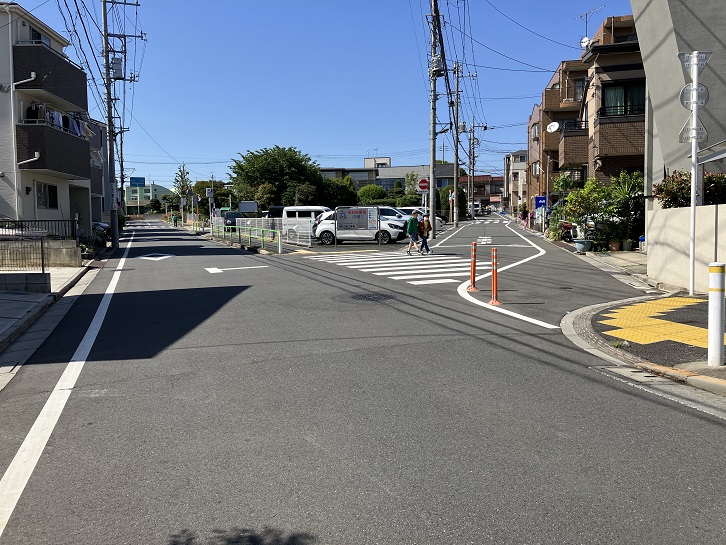 松月院通りは直ぐ先で新大宮バイパスと交差します。新四葉交差点を渡って左折し、新大宮バイパスに沿って側道を北方向に進みます。