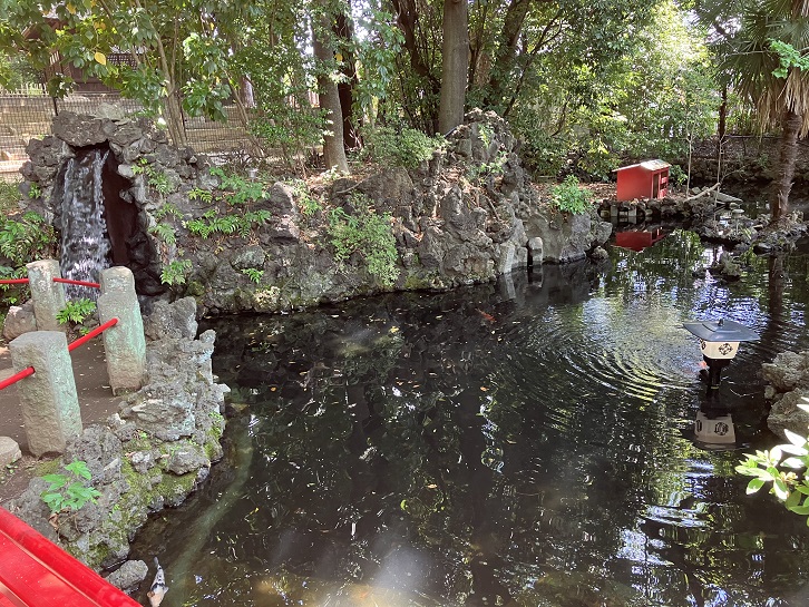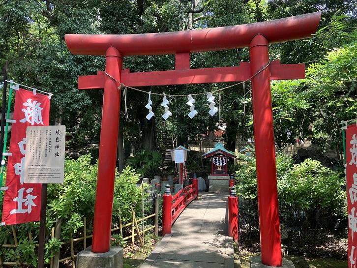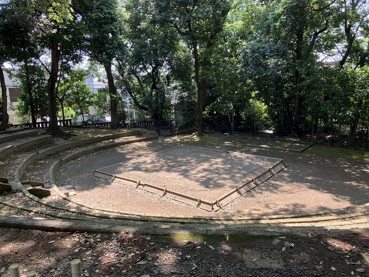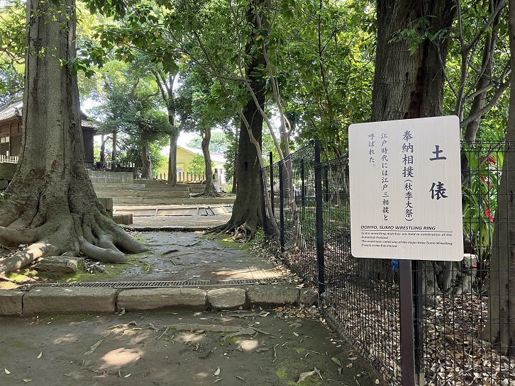 大鳥居の右奥に観客席を備えた立派な土俵があります。娯楽の少なかった江戸時代には大変な賑わいを呈していたのでしょう。