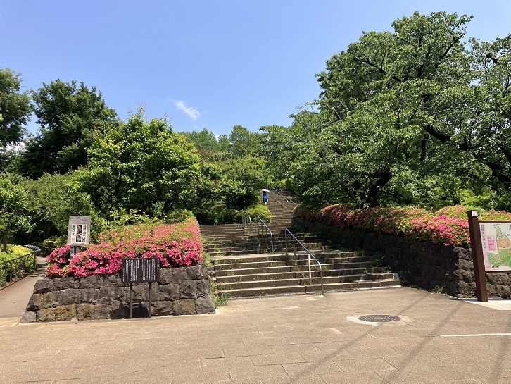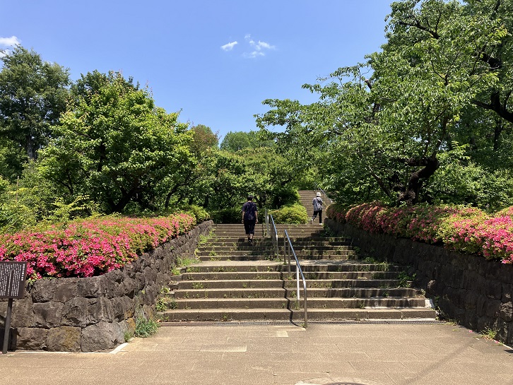 根津山坂は長さが約200mほどの緩やかな坂です。坂名は、羽根木公園のある小高い丘がかって「根津山」と呼ばれていたことに由来します。坂下が数段の階段になっています。