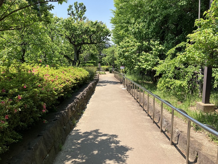 小梅坂は長さが約150mほどの緩やかな坂です。小梅坂は大きく弧を描くようなスロープ状の迂回路になっていて、ベビーカーでも楽に坂上に上がることが出来ます。