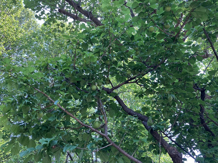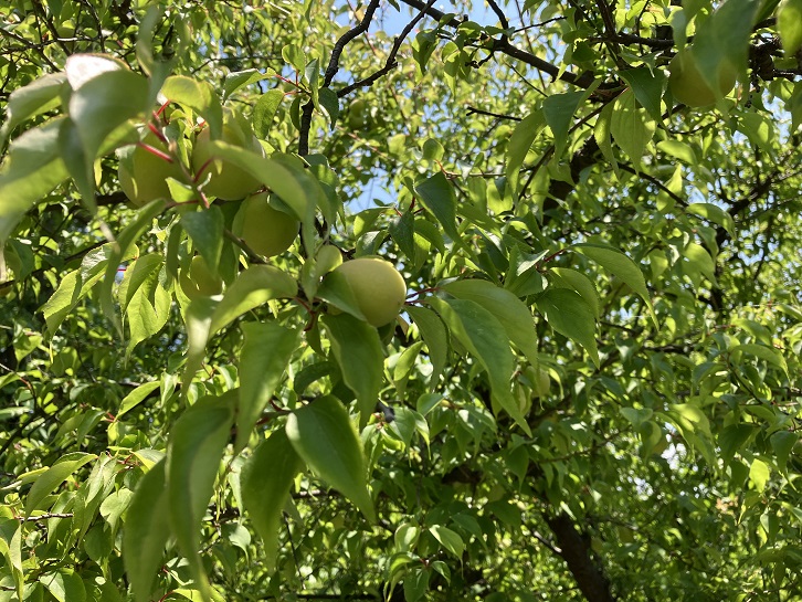 観梅のメインルートだけあって、通路の両側には沢山の梅の木が植わっています。2月に訪れたときは梅の花が満開でしたが、今は青葉が生い茂っています。