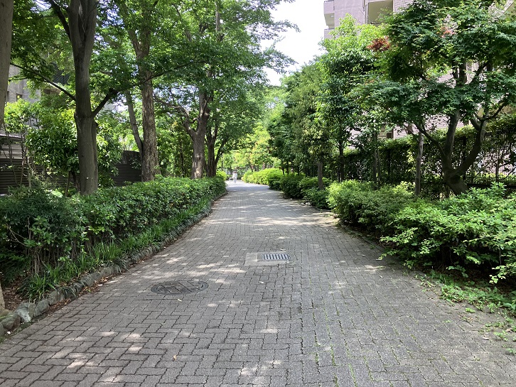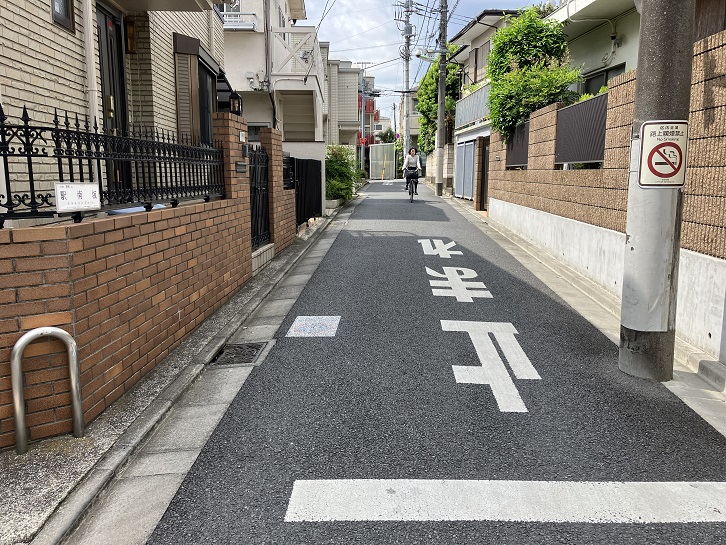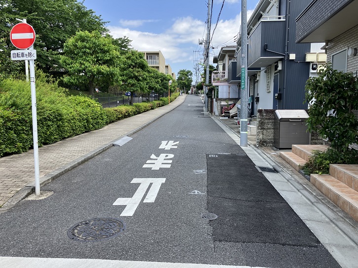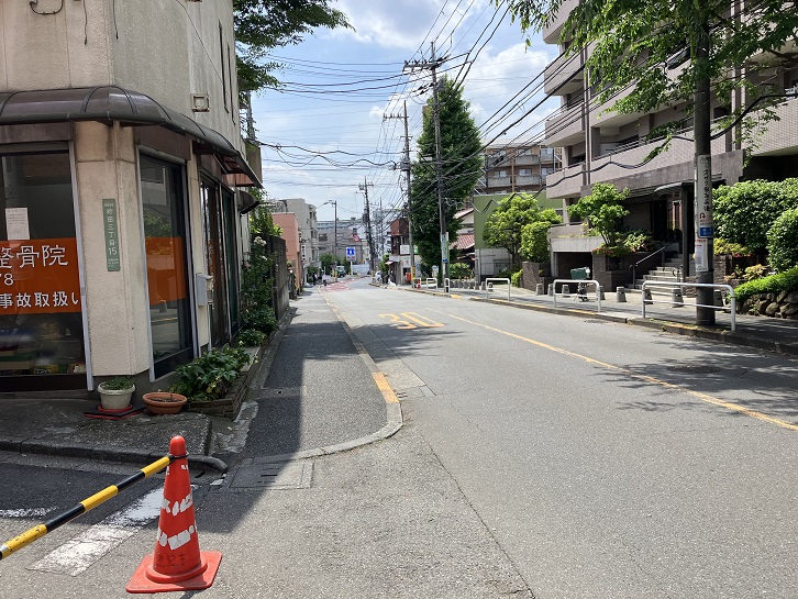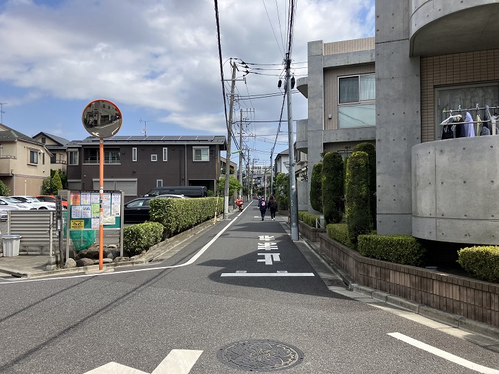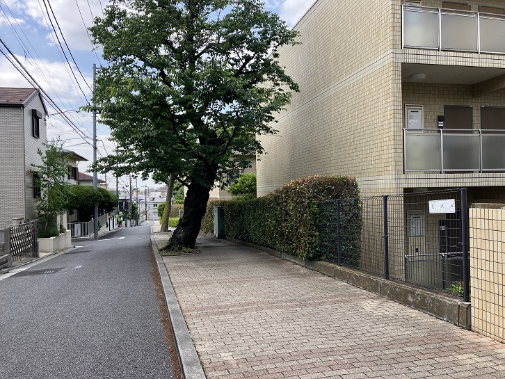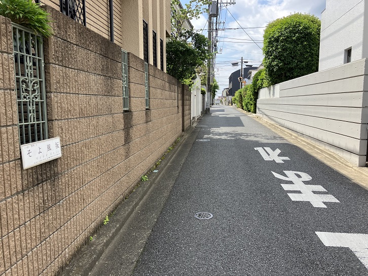 駅南坂の1ブロック西の桜上水第一レジデンス前から坂が下っています。