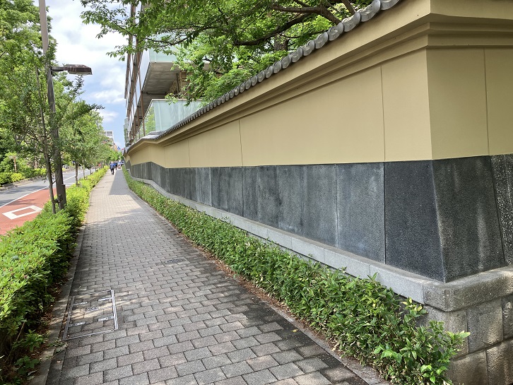 細道坂の1ブロック西の東京音楽堂の前から坂が下っています。