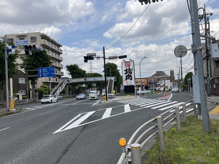 大川橋から甲州街道に合流する仙川三差路交差点まで旧甲州街道が上り坂になっています。