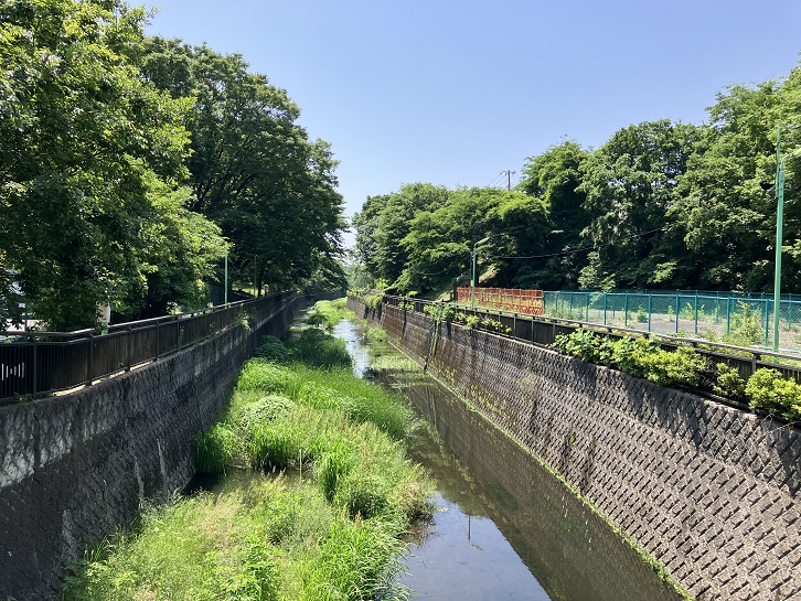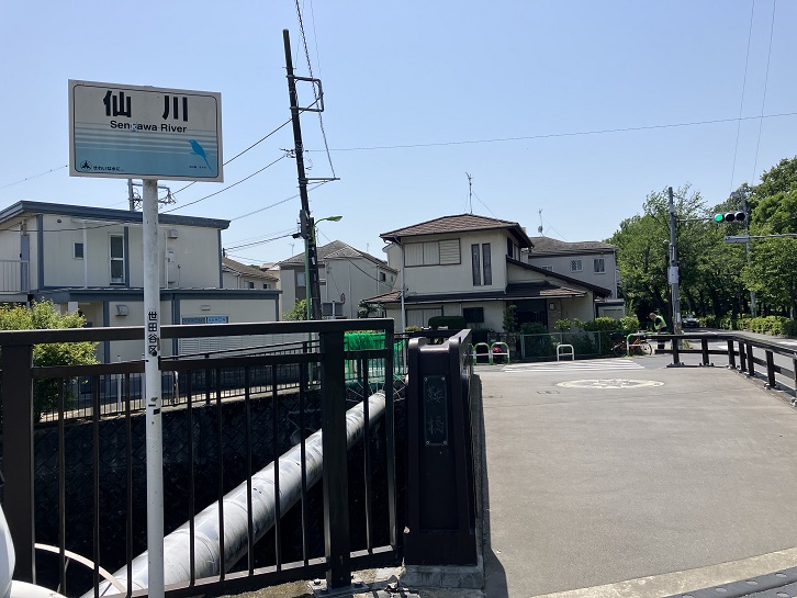 仙川駅というと郊外の小さな駅のように感じますが、駅の周辺には大型のショッピングセンターが建ち並んでいます。飲食店なども多く、垢抜けた街並みは映画にも出てきそうです。そんな駅前から日向通りを南下し、突き当たりで左折して都道118号調布経堂停車場線に入ります。23区内の道路は概ね歩道付きで歩きやすいのですが、この道路は狭い上に大型バスが往来し、交通量も多くてすれ違い時には難儀します。昭和時代のまま取り残された古い道路といった感じです。「停車場線」とは妙な道路名ですが、「停車場」というのは駅という意味で、駅と駅を繋ぐ路線ということのようです。甲州街道から渋谷方面に行く場合、一般的には明大前から井ノ頭通りに入るルートになりますが、ここから都道118号線に入ると距離が短くなるので、交通量が多くなる訳です。世田谷区に入り、宮下橋で仙川を渡ります。