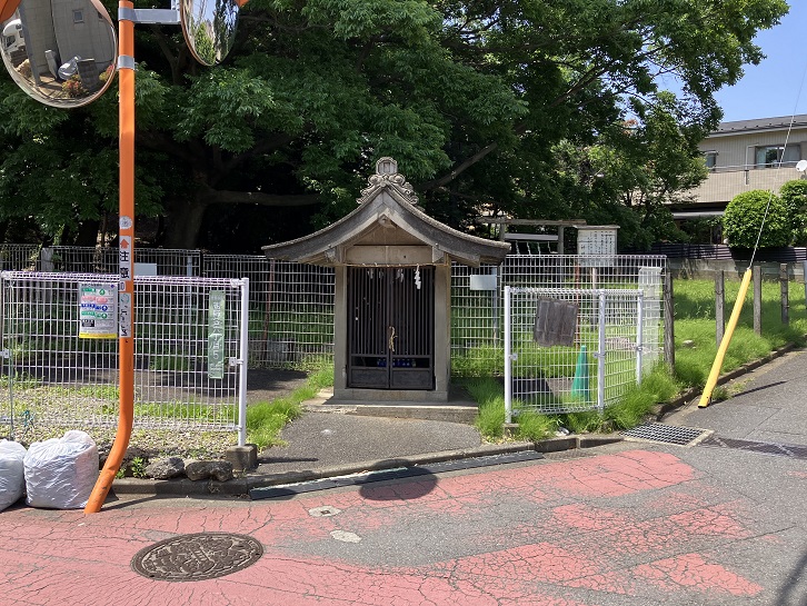 真坂から迷路のような住宅地の路地を北上して熊野神社の三差路に出ます。三差路に面して享保四年(1719年)の銘がある庚申塔を祀った祠が建っています。
