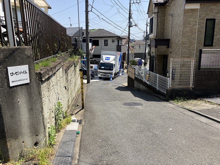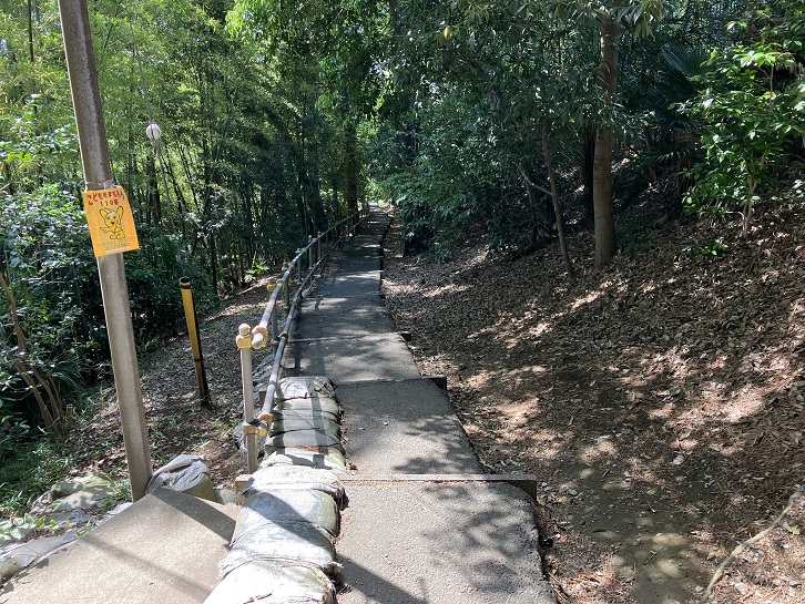 坂は大きく左右に曲がりながら上がっています。息が上がりそうな急坂です。