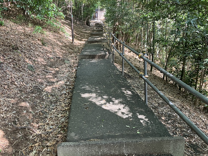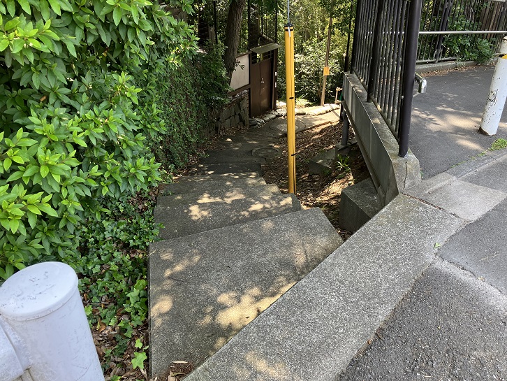 階段の上は急な勾配になっていて、その先は先ほどの三差路に出ます。