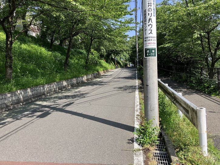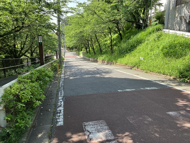 つりがね池公園バス停の先から坂が上がっています。