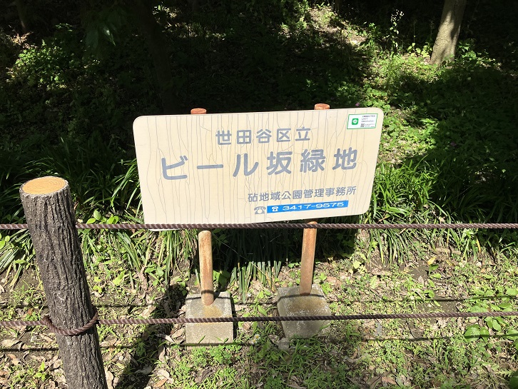 ビール坂は長さが約270mほどのやや急な坂です。この坂は世田谷区と調布市の境界に位置し、世田谷区側では「ビール坂」、調布市側では「ハケの坂」と呼ばれています。世田谷区の「ビール坂」の坂名は、かつて坂下にサッポロビールのグランドや社員寮があったことに由来します(現在は「パークシティ成城」というマンション群になっています)。調布市の「ハケ坂」の坂名は、ハケをその方向に沿うように長く斜めに上下している(意味不明)ことに因んでいます。