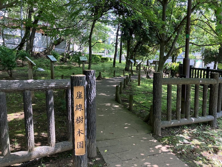 緑地の中には崖線樹木園があり、緑地に植わっている様々な樹木が見本として保存されています。「赤松ぼっくり庭園緑地」にあったアカマツもありますね。最高裁長官(判事?)のお目当ては松茸だったのかも?