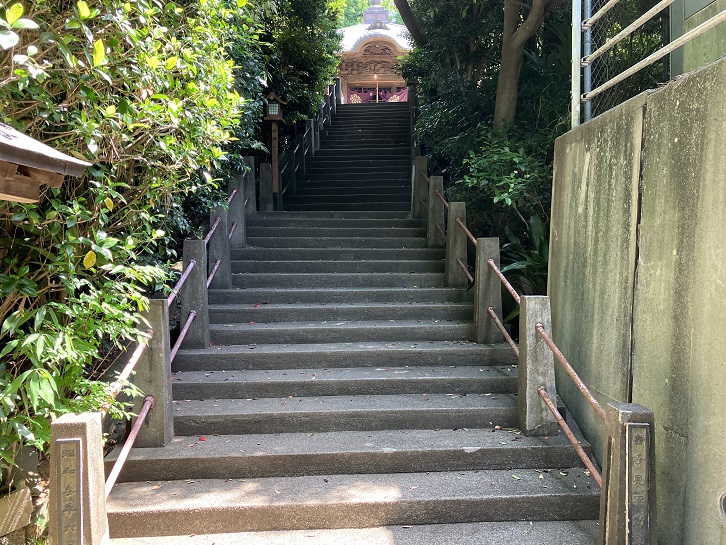 崖線を上がる急な階段の上には喜多見不動堂があります。