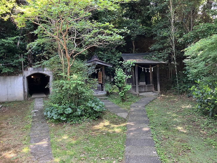 堂宇の右手には、岩屋不動・玉姫稲荷・蚕蔭大神を祀った小祠が並んでいます。岩屋不動は岩屋の奥に鎮座されておわします。