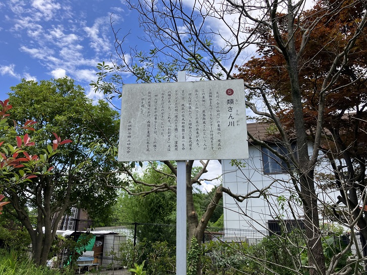 道路の右手の緑が生い茂る広場の中に暗渠が通っています。かって、「類さん川」が流れていた跡なのだそうです。