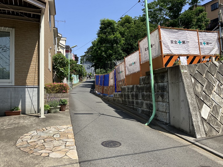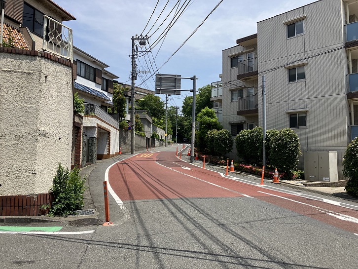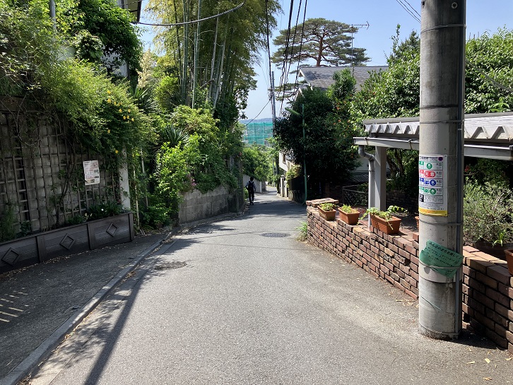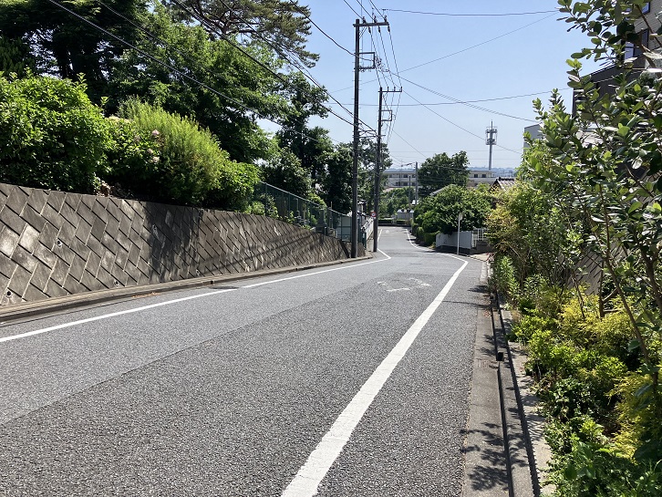 私はこの坂が「岡本三丁目の坂」に違いないと思って次の坂に向かおうとしたのですが、待てよ?この坂には何の標識もありません。坂学会の解説には、坂上に国土交通省が設置した「関東の富士見100景」という石碑が建っていると書かれています。何かおかしいなと思ってよくよく地図を確かめてみましたら、「岡本三丁目の坂」はもっと東寄りにあることが分かりました。今度は慎重に地図を確認しながら東方向に進みます。
