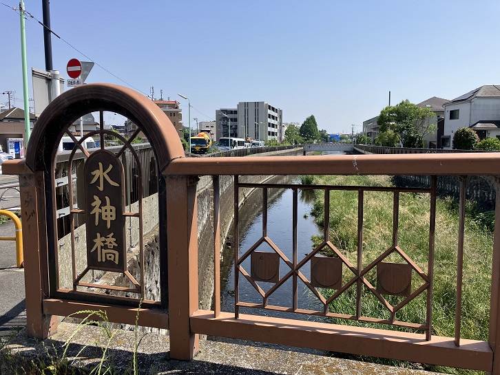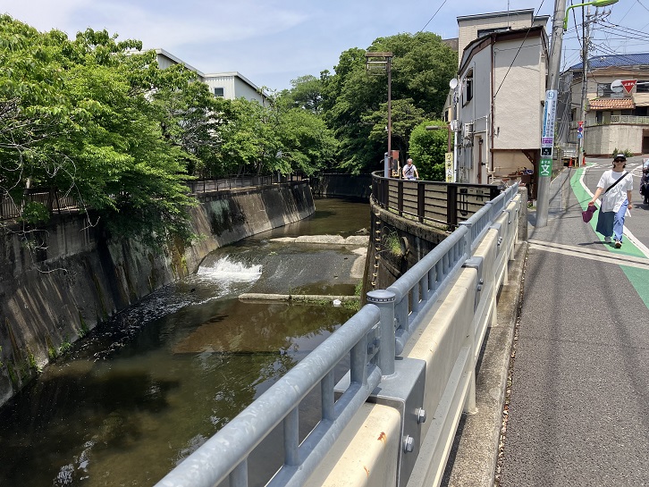 水神橋に戻り、丸子川の緑道に沿って進みます。