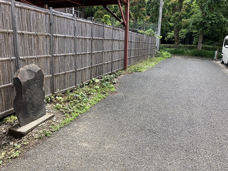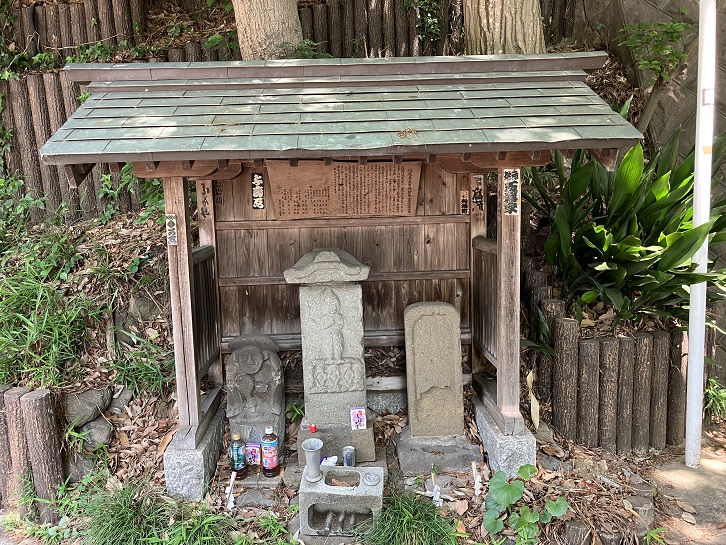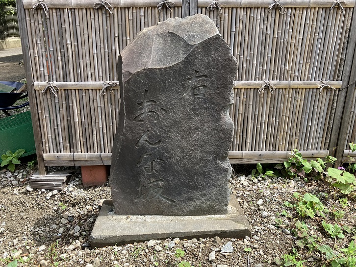 男坂の階段下から鳥居を潜った先の民家の前に石碑が建っています。