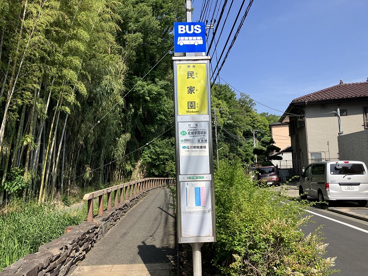 この先、近くに駅もないことだし、今日は民家園の前にあるバス停でお散歩を終了したいと思います。