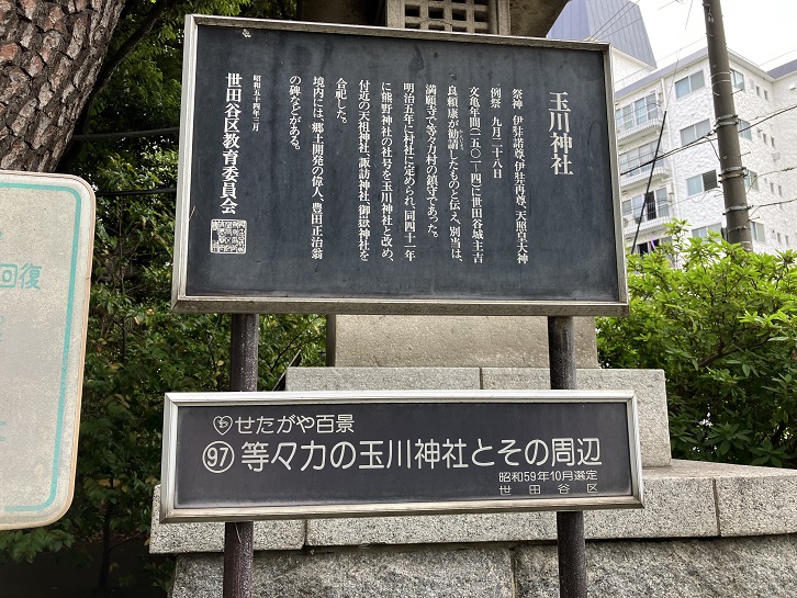 玉川神社は、せたがや百景の「97 等々力の玉川神社とその周辺」にも選ばれています。