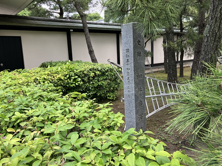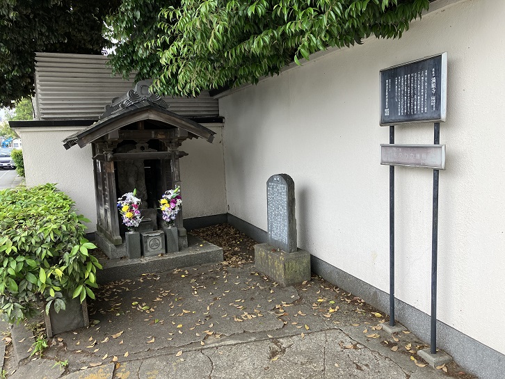 江戸時代に万能の天才といわれた細井廣澤の墓所は本堂の北西にあるそうです。門前に史跡の石柱が建っています。