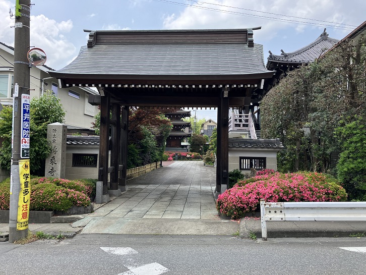 万願寺は平安時代末期の創建とされ、文明二年(1470年)に吉良氏の祈願寺として世田谷城の出城だった深沢の兎々呂城(とどろき:現在の都立園芸高校)に再興され、天文年間に現在地に移転されました。日本三体地蔵といわれた満願寺の一言地蔵尊は講堂に安置され、一言祈願すると願いが叶うといわれています。せたがや百景「96 等々力の満願寺」にも選ばれています。「寺内」って誰のこと?