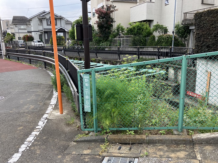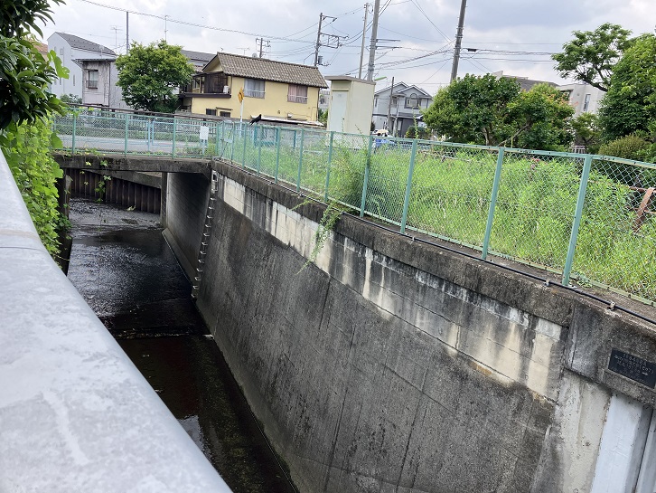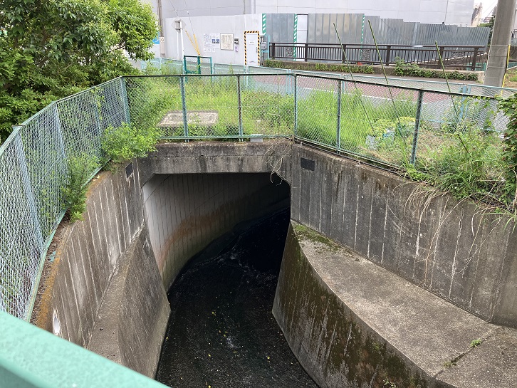 @上流から流れてきた丸子川の水は野毛一丁目5番地で地下トンネルに流れ込みます。