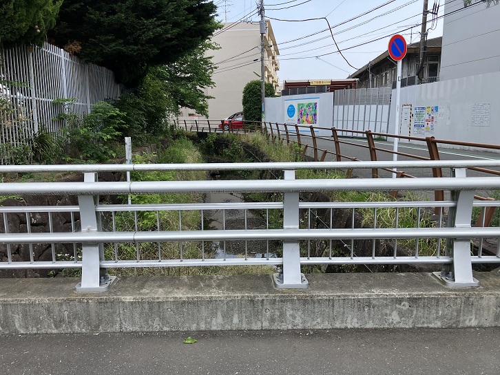 A上流から流れてきた谷沢川の水は橋の下を通り、トンネルから出てきた丸子川の水と合流して下流に向かって流れ出します。