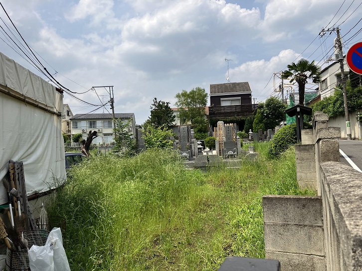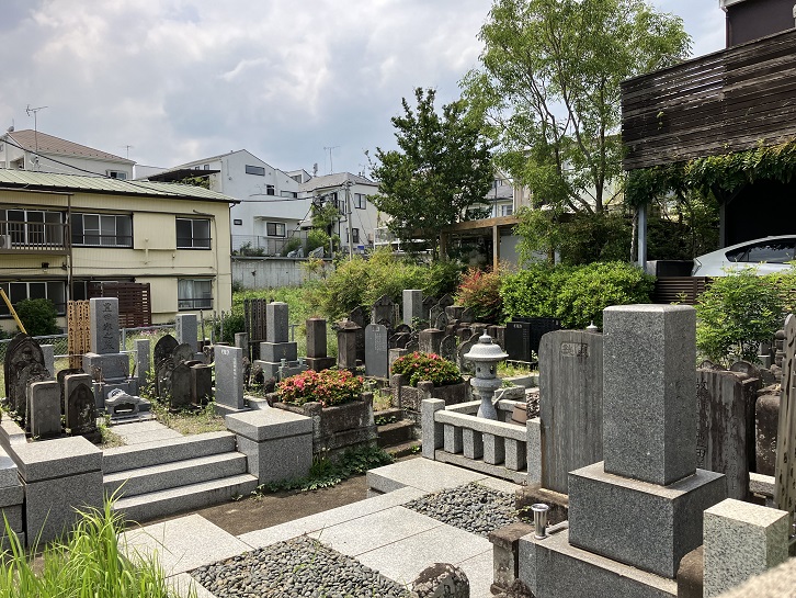 坂の左手に、コンクリートブロックの塀で隔たれた墓地があり、墓石が並んでいます。真新しい墓石や卒塔婆が見られますが、お寺がなくなったのに、どうやって管理しているのでしょうか?