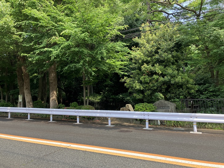 環八通りに面して等々力渓谷の入口があります。ここは「おもいはせの路(国分寺崖線散歩道)」のコースになっています。