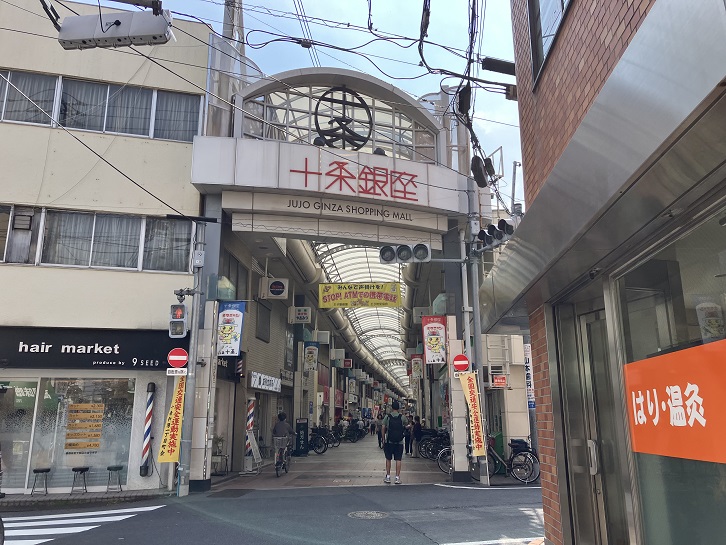 「いこい」から晩杯屋の最初のお店に向かいます。京浜東北線の線路沿いに進み、「東京23区の坂道を巡る」でも訪れた清水坂を上って平和橋手前で環七に出ます。交差点を右折し、埼京線を渡った先で十条銀座商店街のアーケードに入ります。十条銀座商店街は、戸越銀座商店街・砂町銀座商店街と並んで東京の三大銀座商店街といわれています。JR埼京線十条駅前から、中央通り・東通り・西通りに200店を超える店舗で構成され、全長は約520メートルもあります。商店街の歴史は古く、1910年の赤羽線(現在のJR埼京線)十条駅開業後、周辺の宅地化によって商店街が形成されたといわれています。戦前にはすでに十条銀座を名乗っていたということから、ご当地銀座としてはかなりの歴史を持っています。業種構成としては、生鮮食品店・衣料品店を中心に、飲食店・美容室・理髪店・ドラッグストア・日用雑貨店など、生活の利便性を高める業種がひと通り揃っています。特に目を引くのは生鮮食品店と惣菜店で、メディアでも取り上げられ、「十条価格」と呼ばれるほど割安で有名です。商店街のほぼ全域がアーケードで覆われていて、天候を気にせず買い物ができ、一日の来訪客は約15、000人と都内でも有数です。