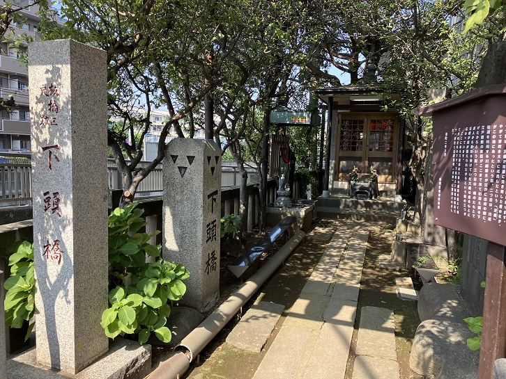 「下頭橋」とは何やらいわれがありそうですが、その由来を解説した案内板が境内に立っています。