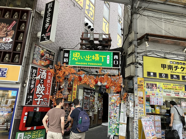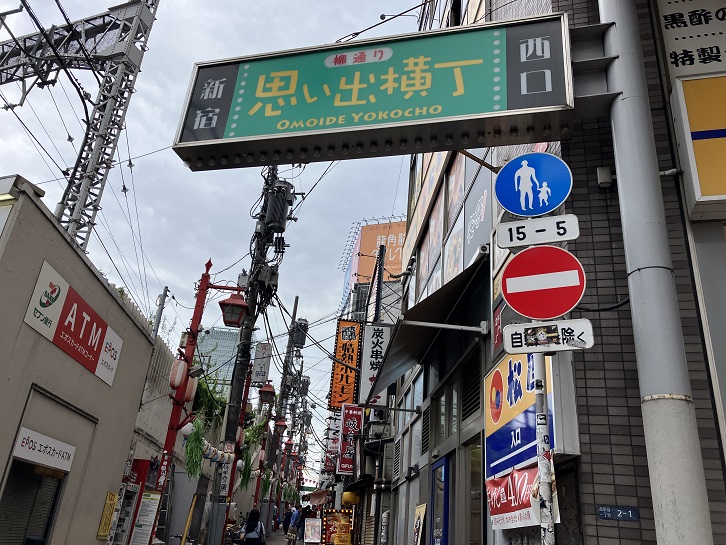 山手通りを中野坂上交差点まで戻り、青梅街道を新宿方向に進みます。新宿駅の西口に位置する思い出横丁は昭和の面影が残る古き良き飲屋街です。そのルーツは終戦直後に焼け野原にできた露天商のマーケットです。現在では、もつ焼き屋・焼鳥屋を中心とした約60店舗の飲食店やチケットショップなど合わせて約80店舗が630坪ほどの土地にひしめき、街の賑わいを支えています。最近は外国人観光客にも人気のスポットとなっています。