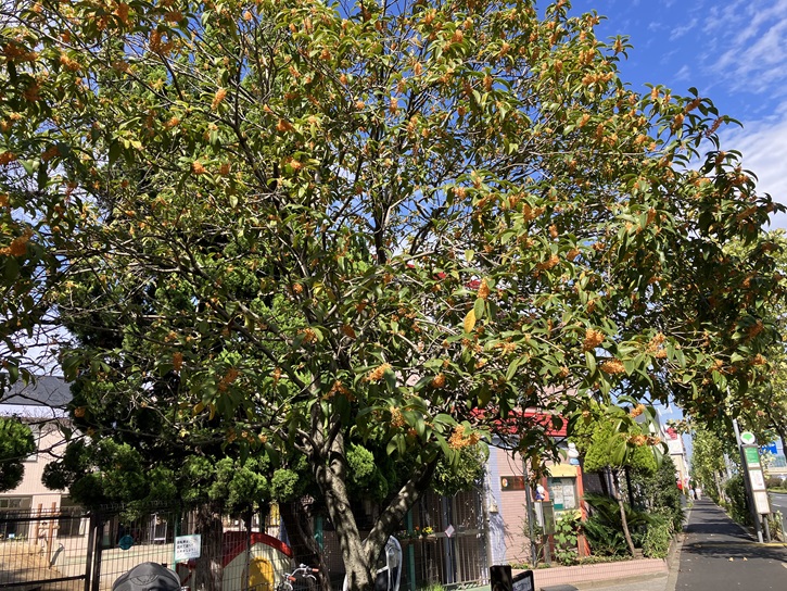 秋の匂いといえばキンモクセイですね。庭園樹や街路樹として植栽に使われ、秋に橙黄色の花を咲かせて甘い香りを放ち、ジンチョウゲやクチナシと合わせて、日本の三大芳香木のひとつに数えられています。樹皮が動物のサイ(犀)の足に似ていることから中国では「木犀」と呼ばれ、オレンジ色や赤色の花を咲かせることから日本では「金木犀」という樹名になりました。ちなみに、白い花を咲かせる木はギンモクセイと呼ばれます。
