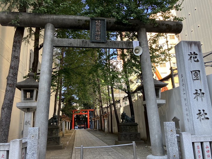 History: Hanazono Shrine is the most important Shinto shrine in Naito Shinjuku and has functioned as the general protector of the Shinjuku area for many centuries. It is said to have been moved from Mt. Yoshino in the province of Yamato in west-central Japan prior to the Tokugawa clan's entry into the province of Musashino in the area of contemporary Tokyo. Until the Kan' ei era in the early to mid-seventeenth century, the shrine was located on what is now the site of Isetan Department Store. The site was approximately 120 meters east to west by 136 meters north to south. In the Tokugawa period, Lord Asakura, Chikugo-no-Kami, received this land from the shogunate for one