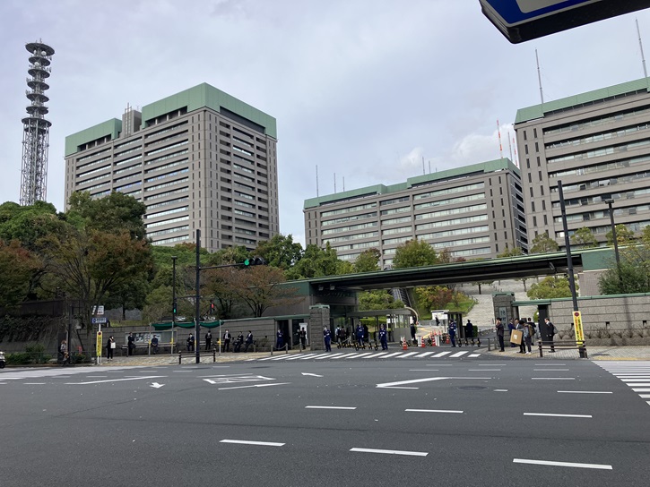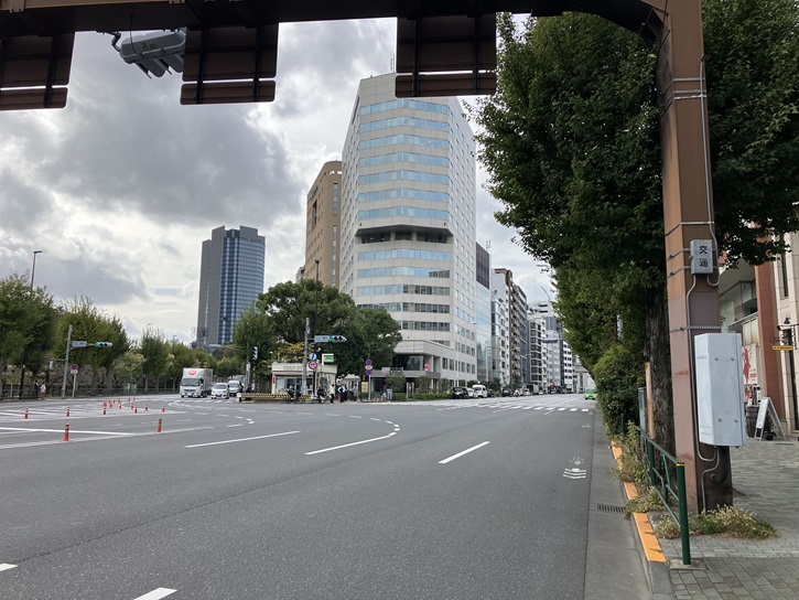 市村本村町交差点の正面の高台に防衛省の本庁舎と建物部分を含め220メートルの高さのアンテナだらけの通信鉄塔が聳えています。防衛省市ヶ谷地区には、防衛省本省のみならず、陸上・海上・航空の3幕僚監部と、これらを統合する統合幕僚監部も所在し、国防の中枢拠点になっています。