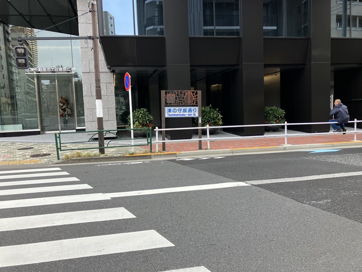 靖国通りの合羽坂下交差点から新宿通りの津之守坂入口交差点まで、南西方向に坂が上がっています。三栄町交差点から合羽坂下交差点までの通りの北半分が津の守坂と呼ばれる坂であるため、この通りの名称は津の守坂通りと呼ばれるようになりました。津の守坂は、江戸時代に坂上に松平摂津の守の屋敷があったことから坂名が付けられました。別名を荒木坂または小栗坂といいます。