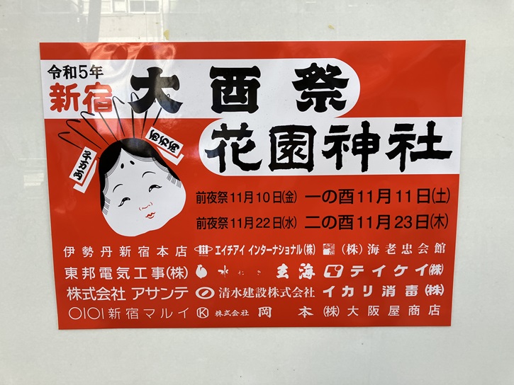 11月11日(土曜日)は一の酉、11月23日(勤労感謝の日)は二の酉ですね。各地の神社では商売繁盛を祈願する伝統行事の酉の市が開催されますが、新宿花園神社では「大酉祭 (新宿酉の市)」が開催されます。境内にはおよそ900灯の提灯が立ち並び、縁起物の熊手を商う熊手商が軒を連ねます。また、熊手商以外の夜店・露店なども出店します。さらに、今年の酉の市では「デリシャスウィートス」による見世物小屋興行が開催される予定で、都内で見世物小屋を観ることができる数少ないチャンスでもあります。