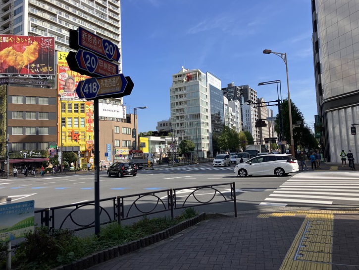 新宿通りを四ッ谷方向に進みます。新宿三丁目交差点付近は、かって「追分」と呼ばれていました。