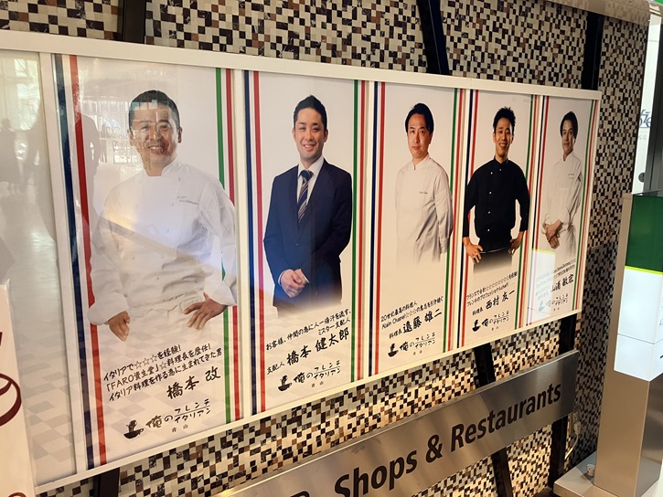 お店の入口横の壁にはシェフの写真が掲げられています。